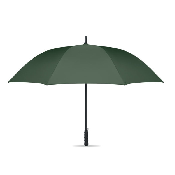 27'''' Regenschirm aus 190T RPET-Pongee. Windbeständig. Stock und Stangen aus Fiberglas. Spitzen und Krone aus Kunststoff. Griff aus Weizenstroh und recyceltem ABS. Automatische Öffnung, manuelle Schließung.