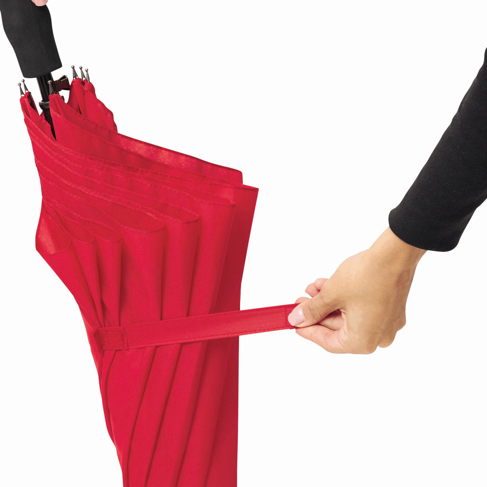 Automatischer Windproof-Golfschirm PASSAT: Metallstock, Fiberglasspeichen, Metalltips, Moosgummigriff, elegante Schirmspitze, Polyester-Pongee-Bespannung, Schließband mit Klettverschluss