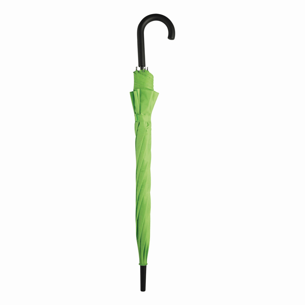 Automatischer Windproof-Stockschirm WIND: Metallstock, Fiberglasspeichen und Metalltips, gummierter Rundhakengriff, Polyester-Pongee-Bespannung, Schließband mit Klettverschluss
