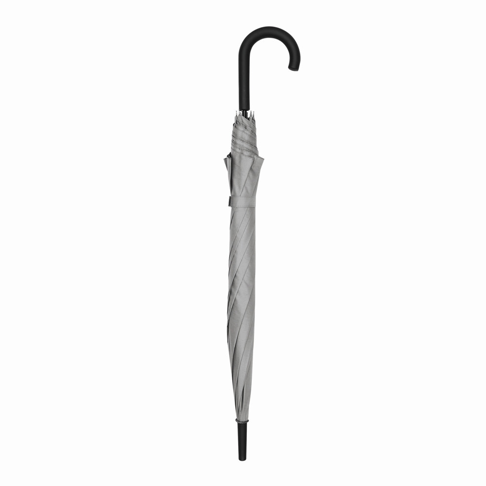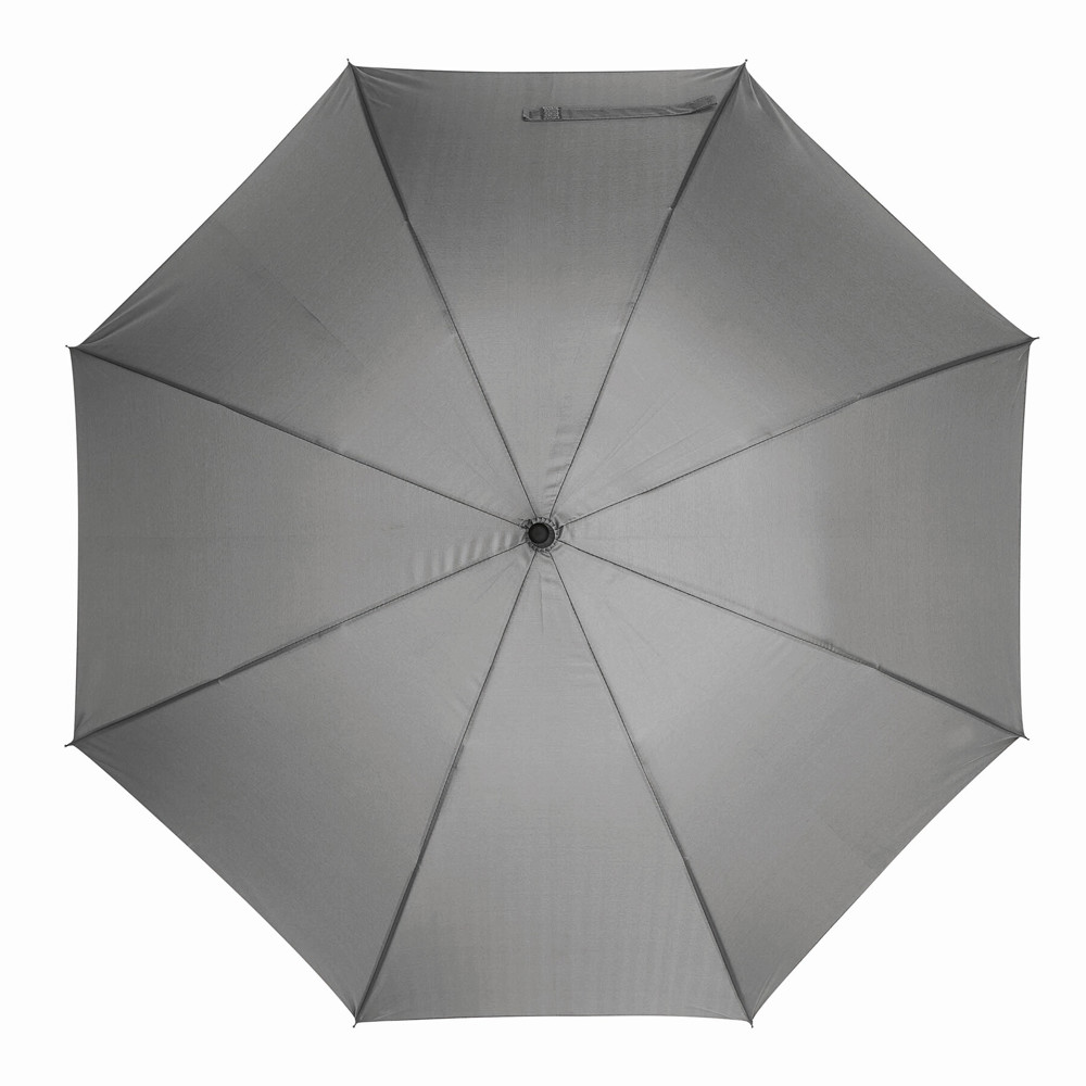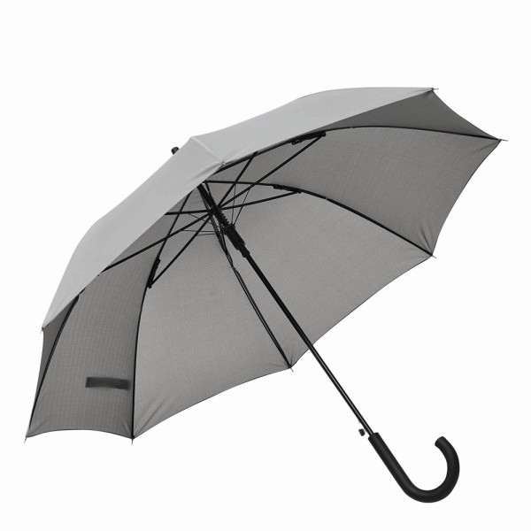 Automatischer Windproof-Stockschirm WIND: Metallstock, Fiberglasspeichen und Metalltips, gummierter Rundhakengriff, Polyester-Pongee-Bespannung, Schließband mit Klettverschluss
