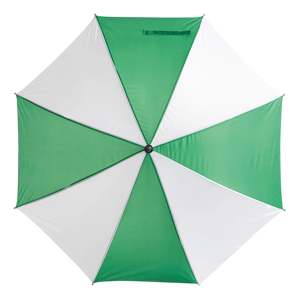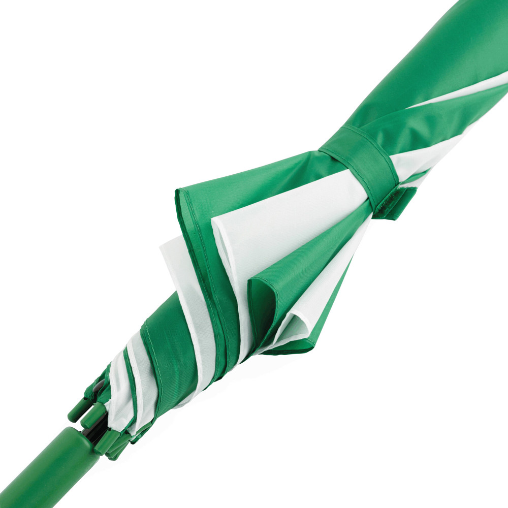 Automatischer Stockschirm DISCO: Metallstock und -speichen, Kunststofftips und -Rundhakengriff, Polyester-Bespannung, Schließband mit Klettverschluss