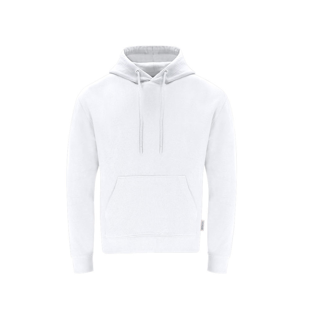 Unisex-Kapuzenpullover aus Bio-Baumwolle und recyceltem Polyester, in weichem 280 g/m² Fleece. Mit doppellagiger gefütterter Kapuze, verstellbaren runden Zugbändern - mit passenden Stoppern - und Metallösen. Elastische Rippstrickbündchen an Ärmeln und Saum sowie eine Kängurutasche vorne. Verstärkte Nahtabdeckung am Kragen mit einem markanten Ökolabel.