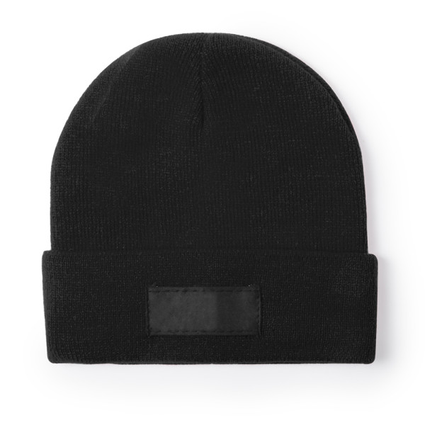 Weiche und warme Kinderhut aus Acrylmaterial. Elastisch und leicht anzupassen, mit passendem Saum und vorderem Etikett für Branding.