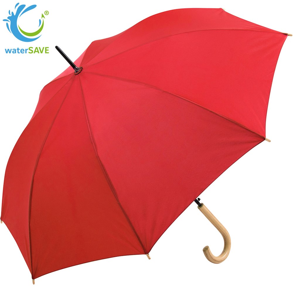 Material: Bezug: 100 % Polyester-Pongee (recycelt und WaterSAVE®). Griff: Echtholz. Schaft: Stahl