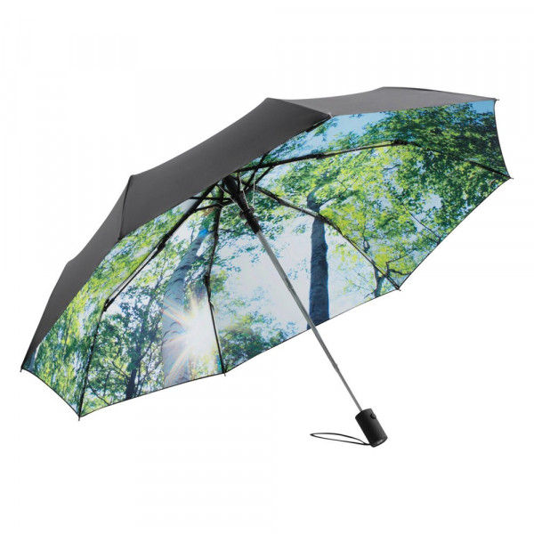 AC-Taschenschirm FARE® Impressions - Schwarz/Wald-Design