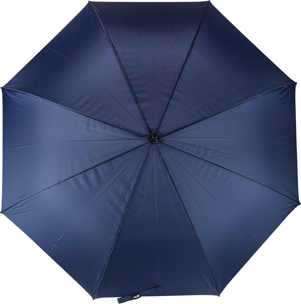 rPET 190T automatischer Golfschirm (27 Zoll) mit acht Paneelen und einem Fiberglasgestell. Mit Druckknopföffnung und rPET-Etikett auf dem Klettverschluss. Winddicht.