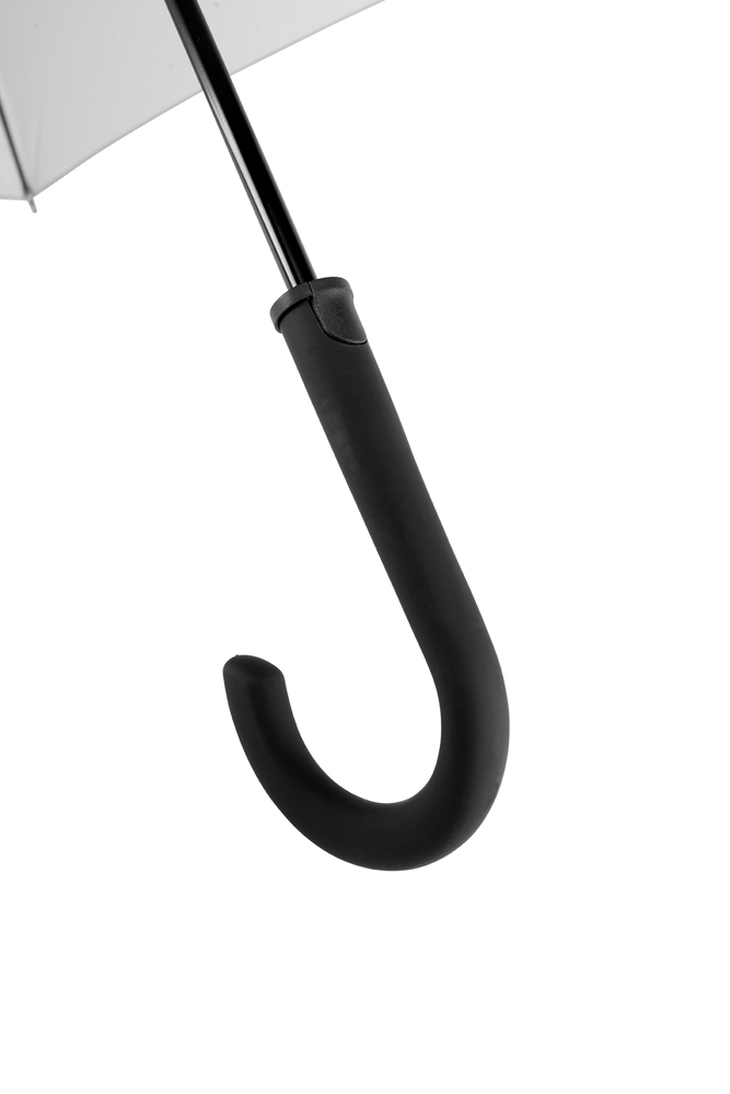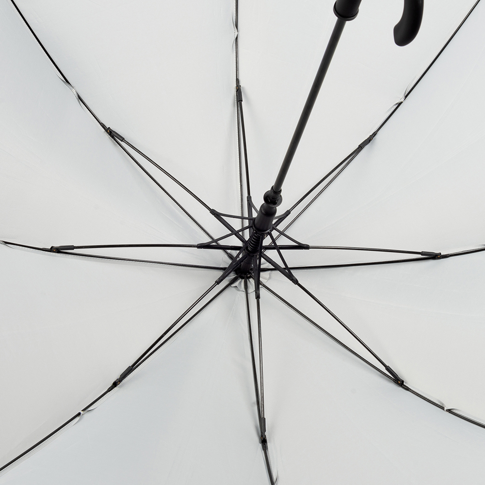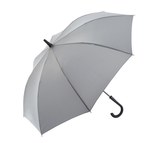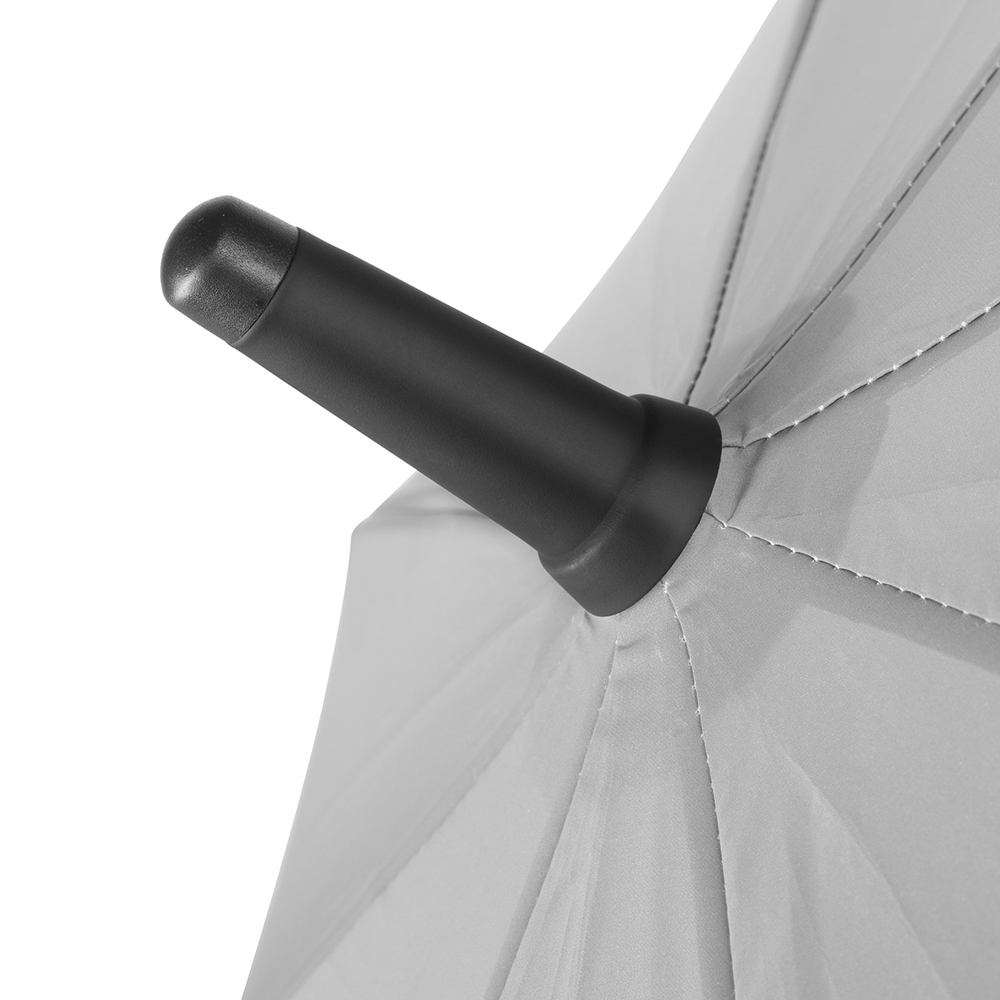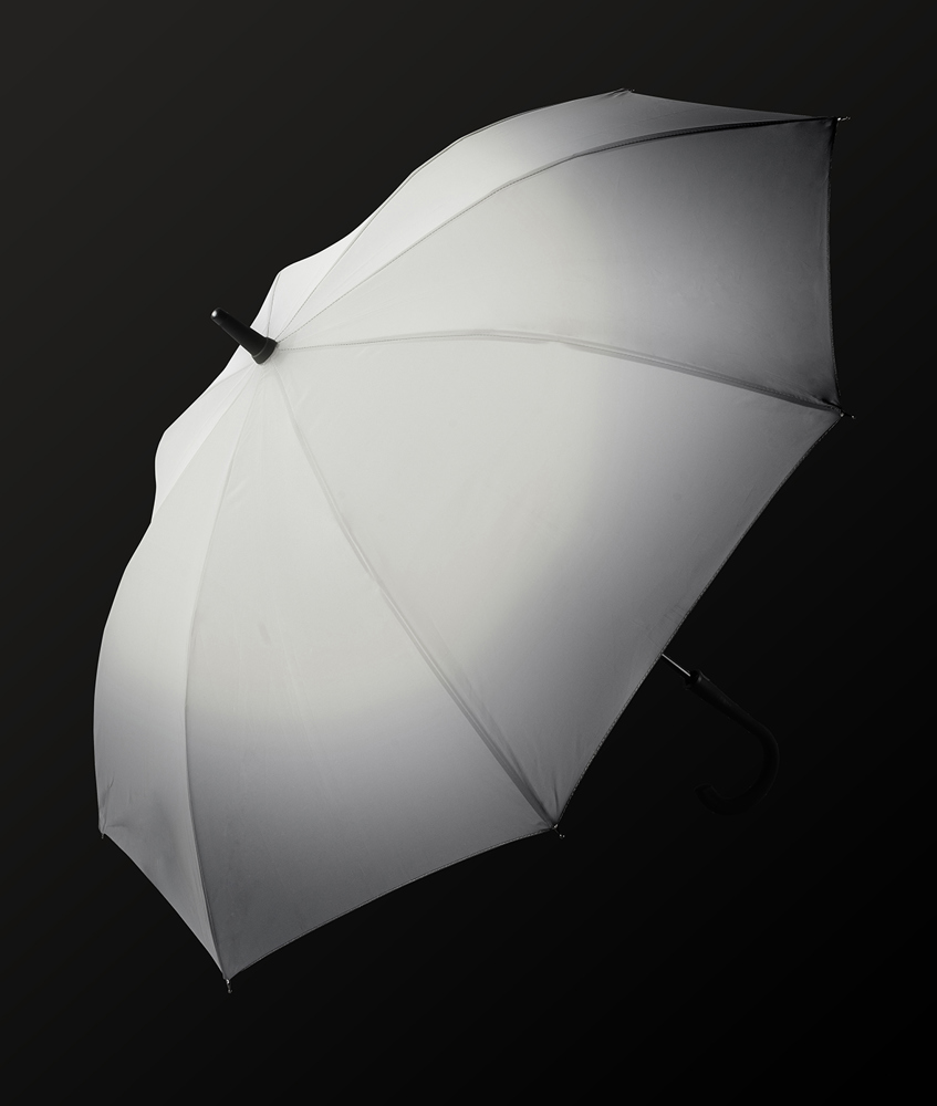 Der Regenschirm hat eine Bespannung aus reflektierendem Material und einen Durchmesser von ca. 102 cm. Im geschlossenen Zustand misst er ca. 83 cm in der Länge. Der Schirm verfügt über eine Automatikfunktion und besteht aus 8 Segmenten. Zusätzlich ist er mit einer Windproof-Funktion ausgestattet und hat einen gummierten Rundgriff in Schwarz.