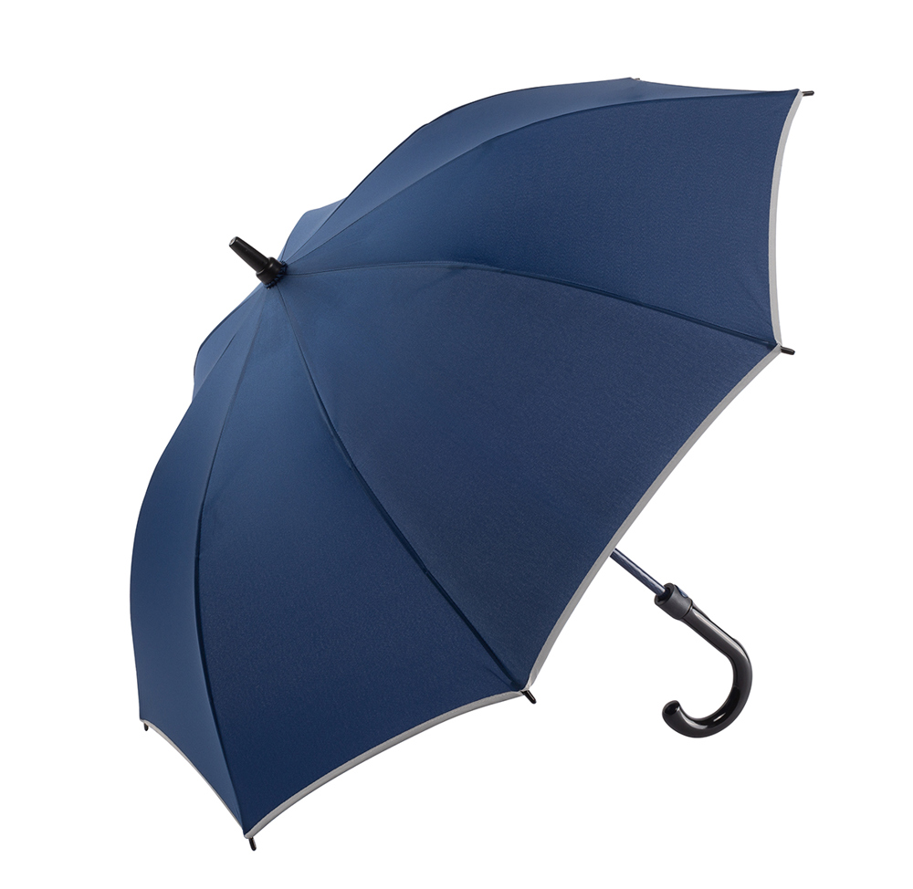 Der Schirm bietet eine Bespannung aus 190T Pongee mit reflektierender Bordüre für bessere Sichtbarkeit. Mit einem Durchmesser von ca. 104 cm schützt er zuverlässig vor Wind und Regen. Im geschlossenen Zustand misst der Schirm ca. 83 cm in der Länge. Die Automatikfunktion ermöglicht ein schnelles Öffnen. Er ist außerdem mit einer Windproof-Funktion ausgestattet, die ihn auch bei starkem Wind stabil hält. Der Kunststoffrundgriff in schwarz glänzend sorgt für einen komfortablen Halt.