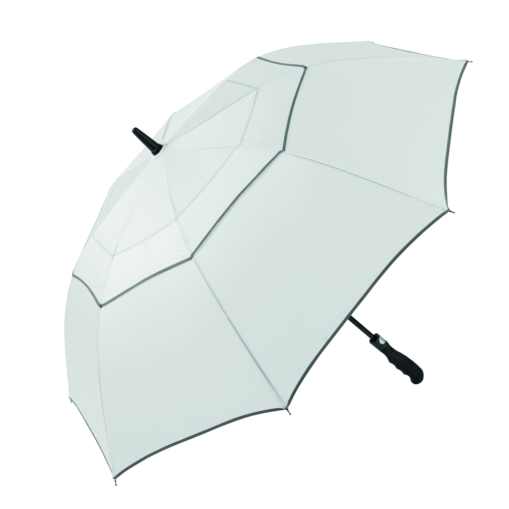 Der Schirm bietet eine Bespannung aus 190T Pongee mit zwei reflektierenden Bordüren für verbesserte Sichtbarkeit. Mit einem Durchmesser von ca. 113 cm bietet er optimalen Schutz vor Wind und Regen. Im geschlossenen Zustand misst der Schirm ca. 87 cm in der Länge. Die Automatikfunktion ermöglicht ein schnelles Öffnen. Der Schirm hat 8 Segmente und ist mit einer Windproof-Funktion ausgestattet, die ihn auch bei starkem Wind stabil hält. Der gummierte Profilgriff in schwarz sorgt für einen sicheren und komfortablen Halt.