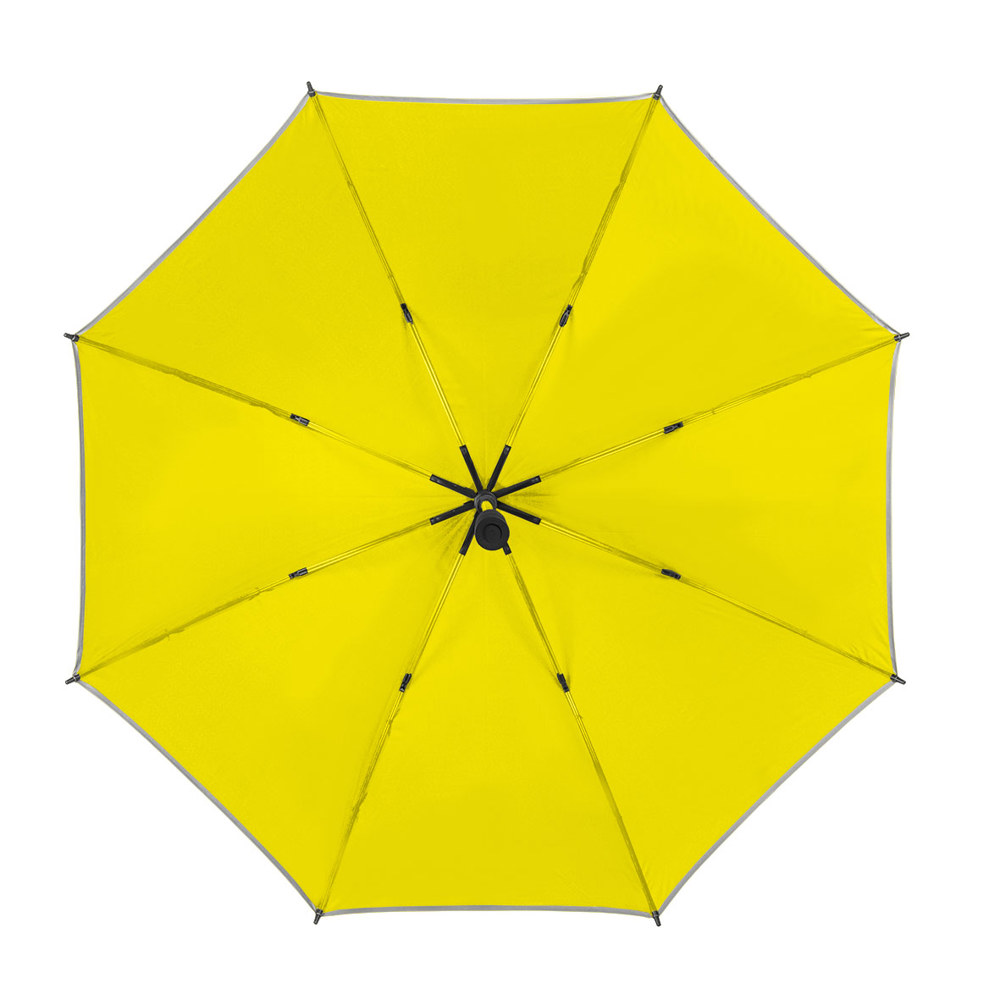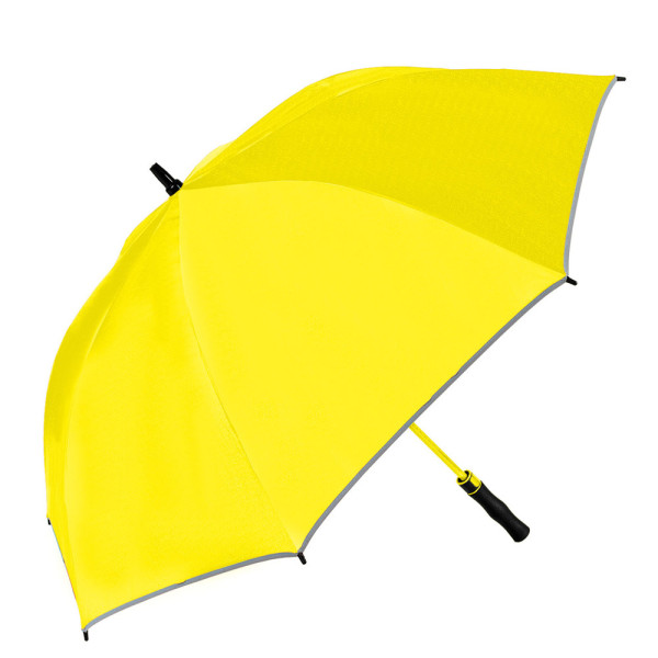 Der Gasschirm hat eine Länge von ca. 93 cm (geschlossen) und lässt sich automatisch öffnen. Er besteht aus 8 Segmenten und einem 14 mm Fiberglasschaft in der Farbe der Bespannung. Mit 68 cm langen Doppel-Fiberglasspeichen in der gleichen Farbe wie die Bespannung bietet der Schirm hohe Stabilität. Ausgestattet mit einer Windproof-Funktion trotzt er auch stärkeren Winden. Der PU-beschichtete, gerade Handgriff mit Farbakzenten in der Farbe der Bespannung sorgt für einen komfortablen Halt. Eine Doming-Veredelung im Griff ist möglich.
