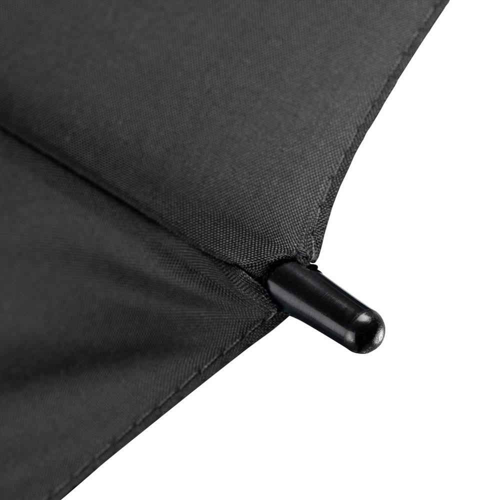 Dieser hochwertige Regenschirm verfügt über eine Bespannung aus 190T rPET-Pongee und einen Durchmesser von ca. 130 cm. Im geschlossenen Zustand misst er ca. 99 cm. Mit einer praktischen Automatikfunktion öffnet er sich schnell und einfach. Dank der Windproof-Funktion bleibt der Schirm auch bei windigen Bedingungen stabil. Der gerade schwarze Griff aus Kunststoff mit PU-Beschichtung und die Kunststofftips und -spitze in Schwarz runden das elegante Design ab.