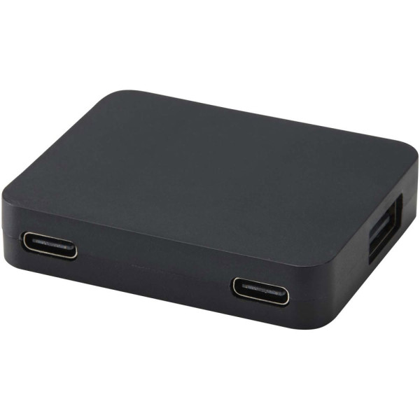 Gaia 4 Port USB Hub mit USB-A- und Typ-C-Ausgang und zwei Eingängen aus recyceltem Kunststoff