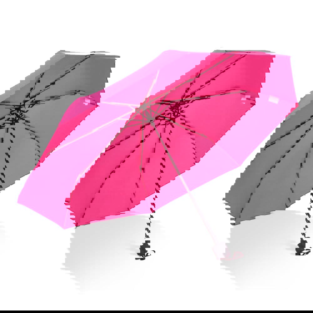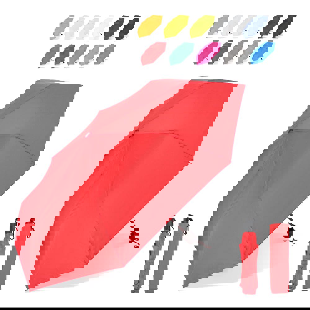 Kompakter Faltschirm mit einem Schirmdach aus 190T-Polyester, der für stürmische Bedingungen ausgelegt ist. Verfügt über einen PP-Griff und umfasst eine Hülle zur einfachen Aufbewahrung. Manuelles Öffnen und Schließen.