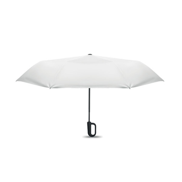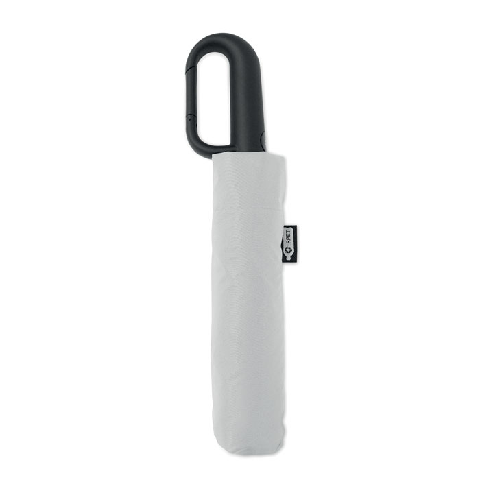 21'' Regenschirm aus 190 T RPET Pongee. Windbeständig. Schwarz überzogenes 2-teiliges Fiberglasgestell, Stangen aus Fiberglas. Gummierter D-förmiger Karabinergriff. Passende Schirmhülle. Automatische Öffnung und Schließung.