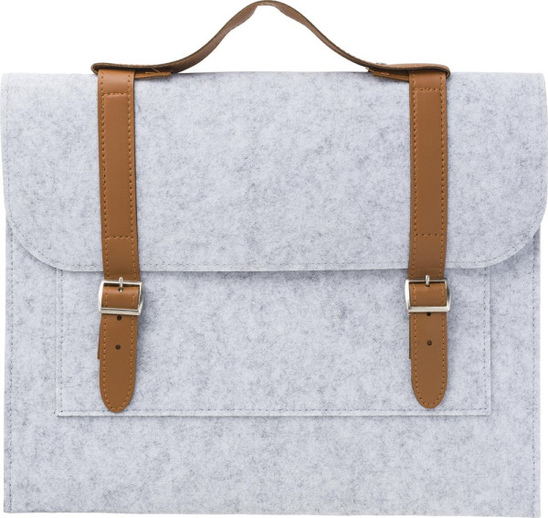 Dokumententasche aus rPET-Filz mit PU-Details. Ein großes Fach. Die Tasche wird mit zwei Schnallen geschlossen.