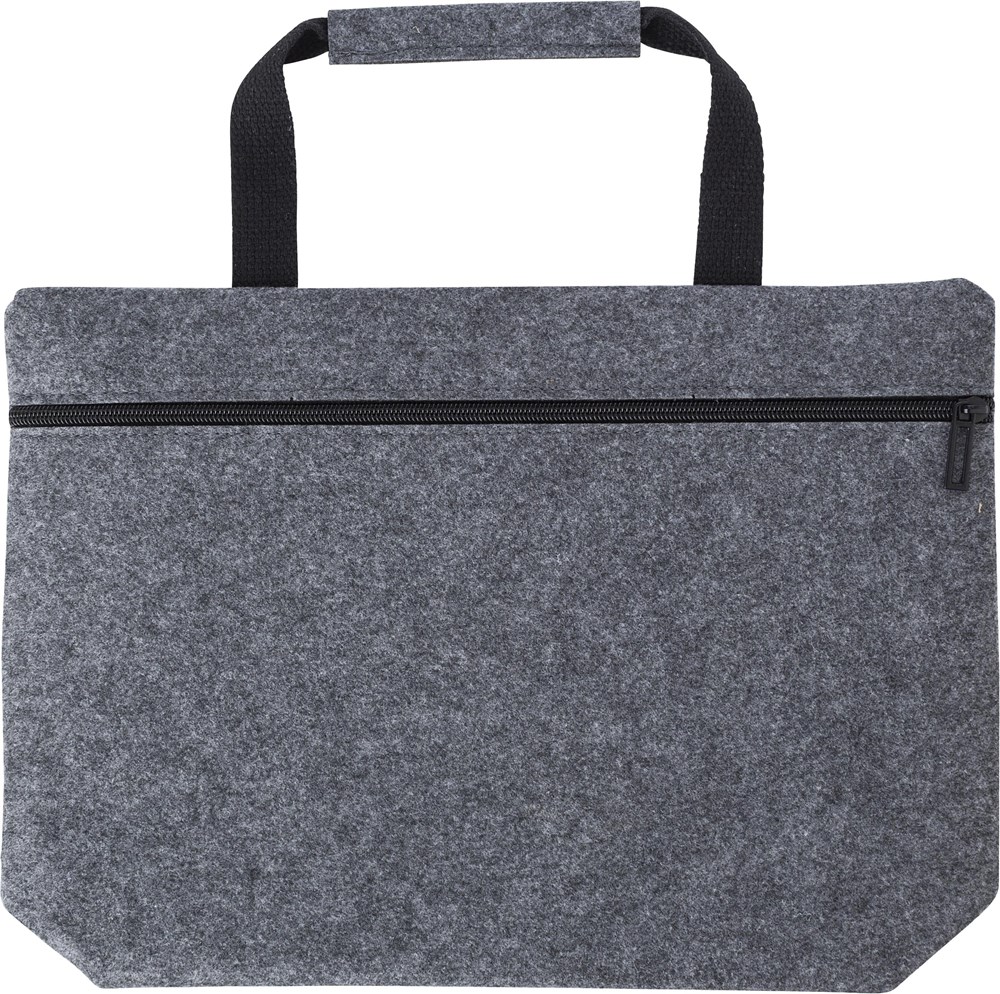 Dokumententasche aus rPET-Filz mit Laptop-Fach (15 Zoll), welches mit einem Reißverschluss und einem kurzen Griff verschlossen werden kann.