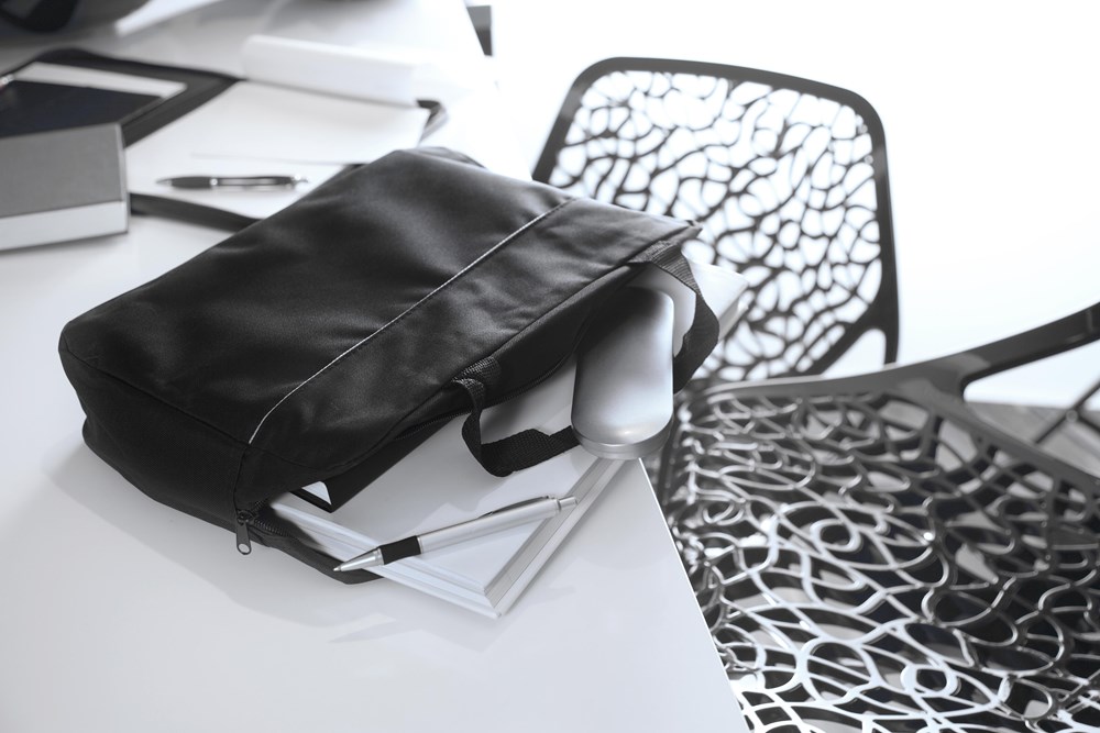 Dokumententasche aus Polyester (600D), mit RV-Hauptfach und zwei kurzen Tragegriffen.