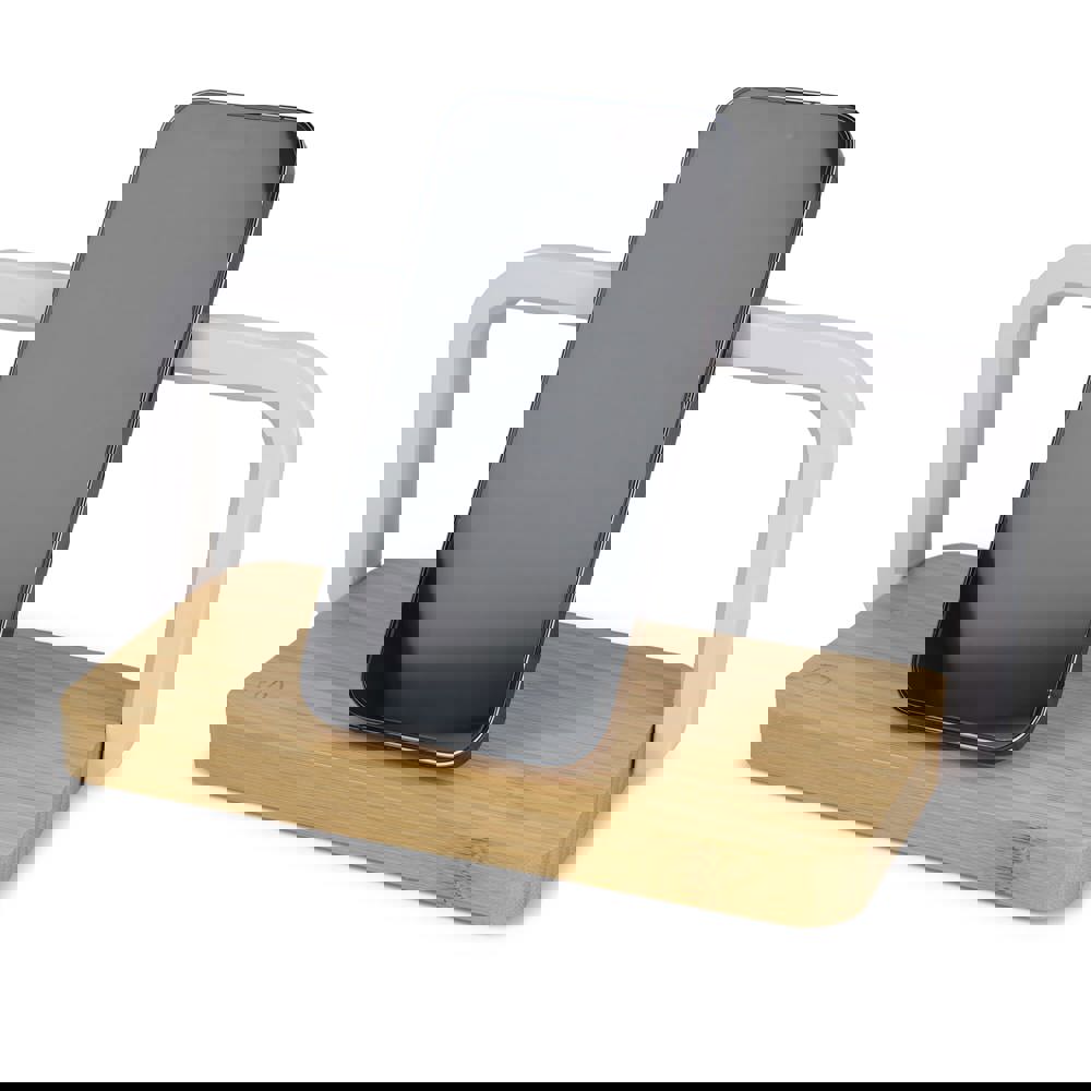 Dieses stilvolle kabellose Ladegerät aus Bambus verbindet ein natürliches Aussehen mit optimaler Funktionalität. Mit einer Leistung von 15 W lädt es Ihr Smartphone schnell und kabellos auf. Die integrierte dimmbare LED-Leuchte sorgt für eine stimmungsvolle Beleuchtung Ihres Nachttischs. Inklusive USB-C-Kabel.
