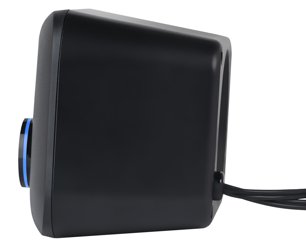 Set aus zentralem Bassmodul und zwei Satellitenlautsprechern (5W + 2 x 3W, passiv).