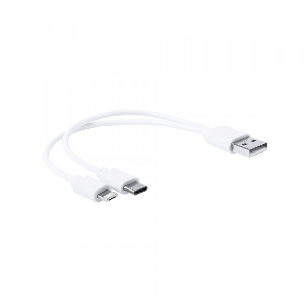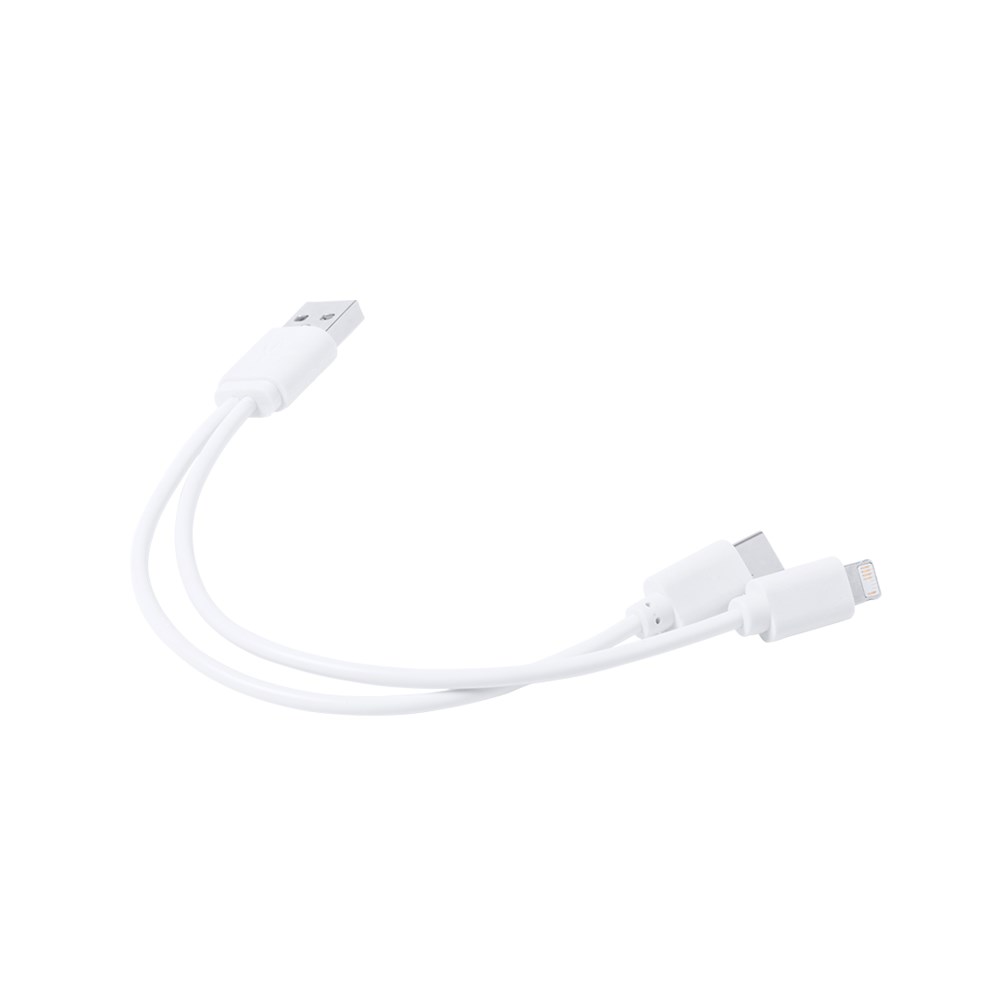 USB-Ladekabel mit USB-C- sowie Micro-USB-/Lightning-Anschluss. Mit minimalistischem Design in Weiß.