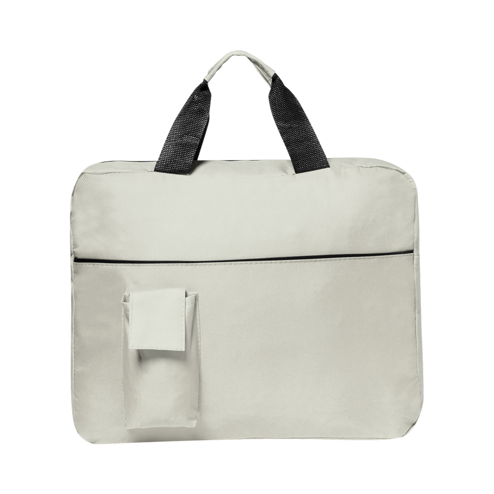 Dokumententasche mit Reißverschluss aus angenehm weichem 600D Polyester in lebendigen Farben. Mit farblich passenden, verstärkten Tragegriffen und Fronttasche mit Klettverschluss für Smartphone.
