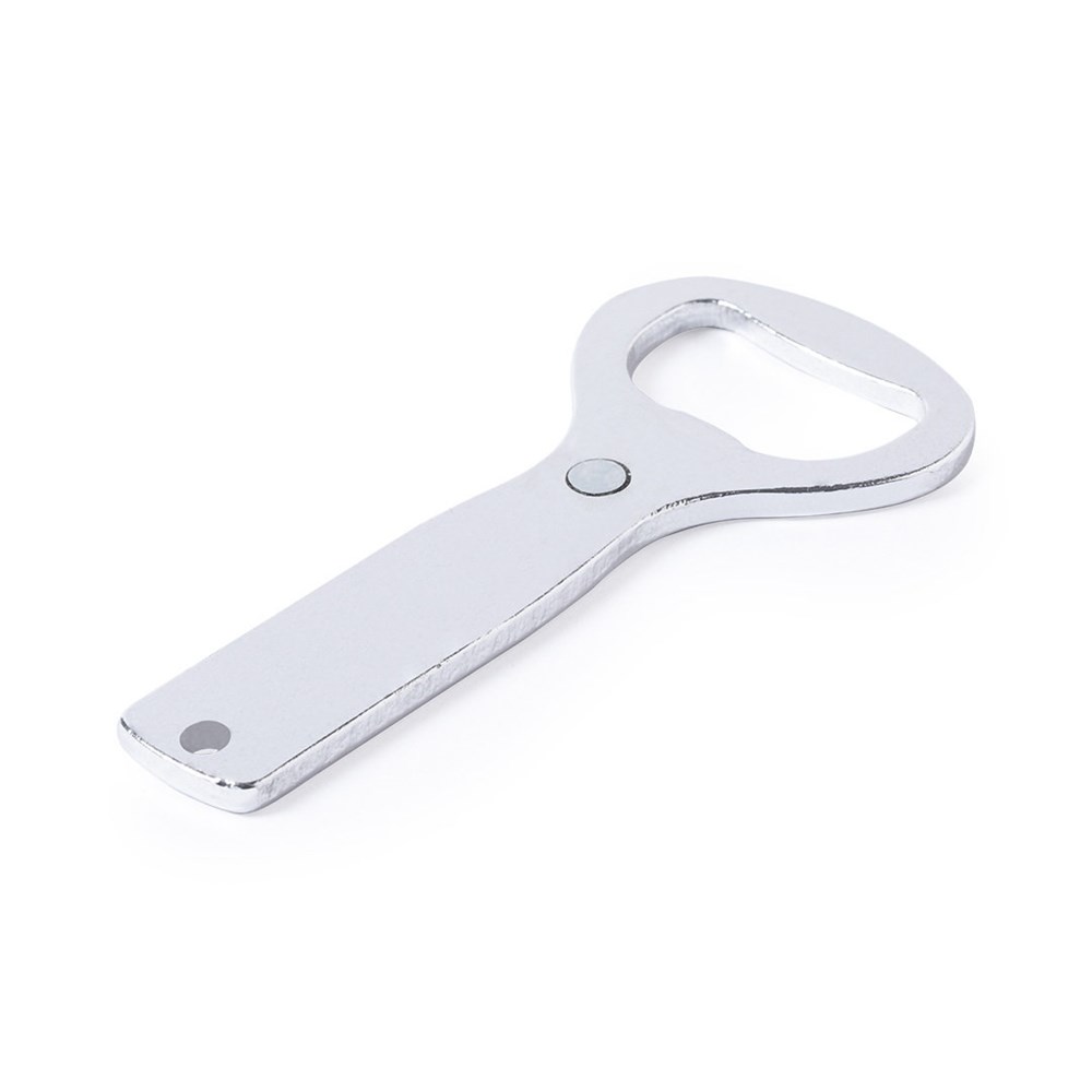 Schlichter und eleganter Öffner aus Aluminium und mit Magnet am Griff. Individuelle Präsentation im selbstschließenden Beutel.