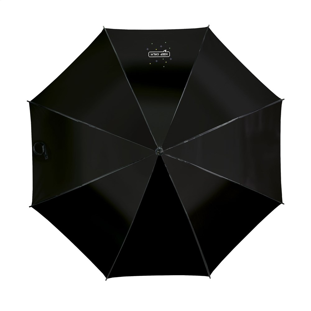Regenschirm mit automatischer Teleskopöffnung. 190T Polyester-Bespannung, Fiberglasrahmen, Metallschaft, Klettverschluss, gebogenem, klassischem Handgriff, der durch die luxuriöse Gummiummantelung gut in der Hand liegt.