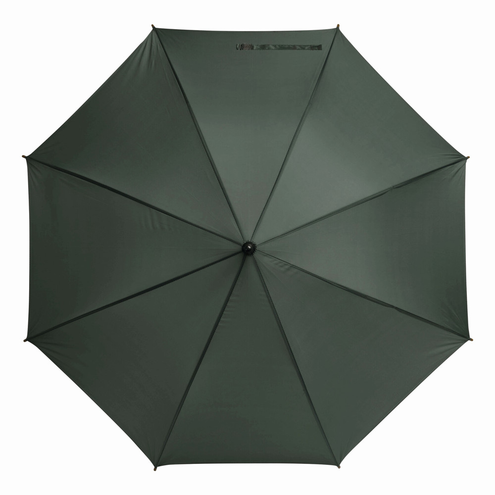 Automatik-Holzstockschirm BOOGIE: Metallspeichen, Holztips und -Rundhakengriff, Nylon-Bespannung, Schließband mit Klettverschluss