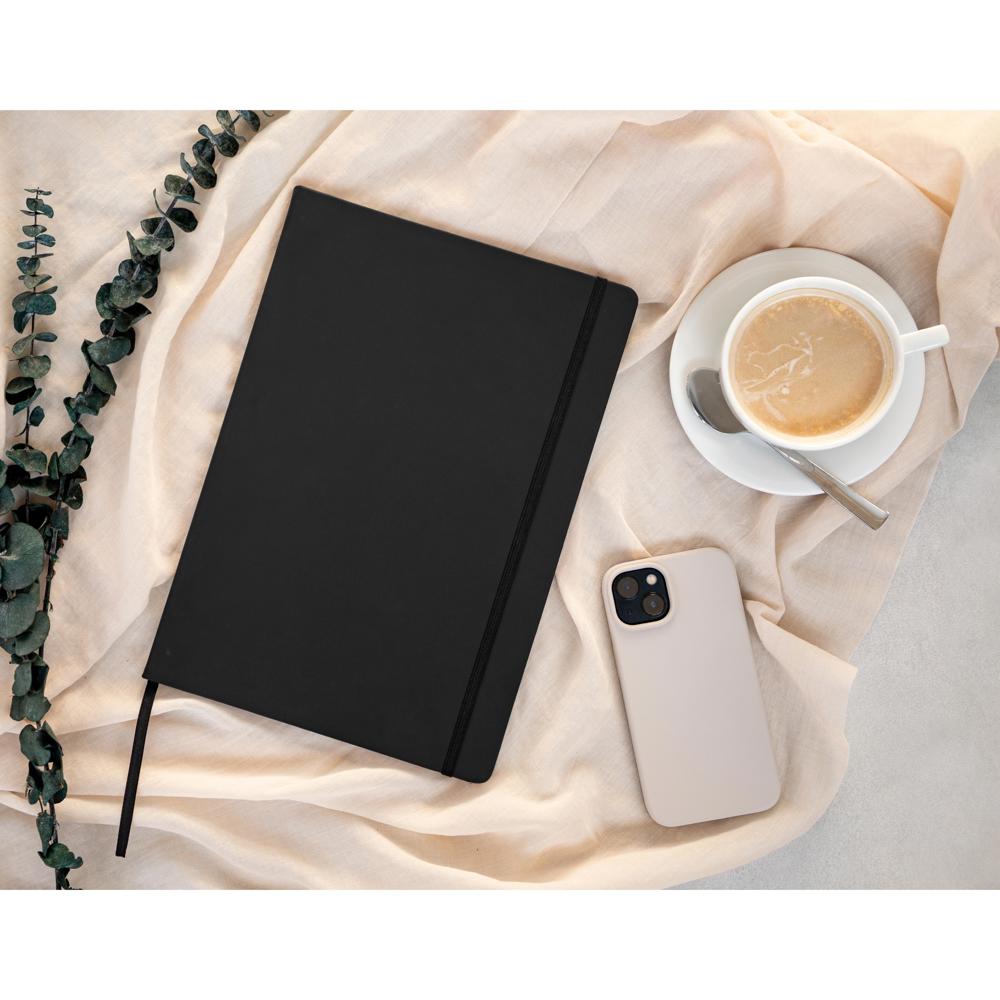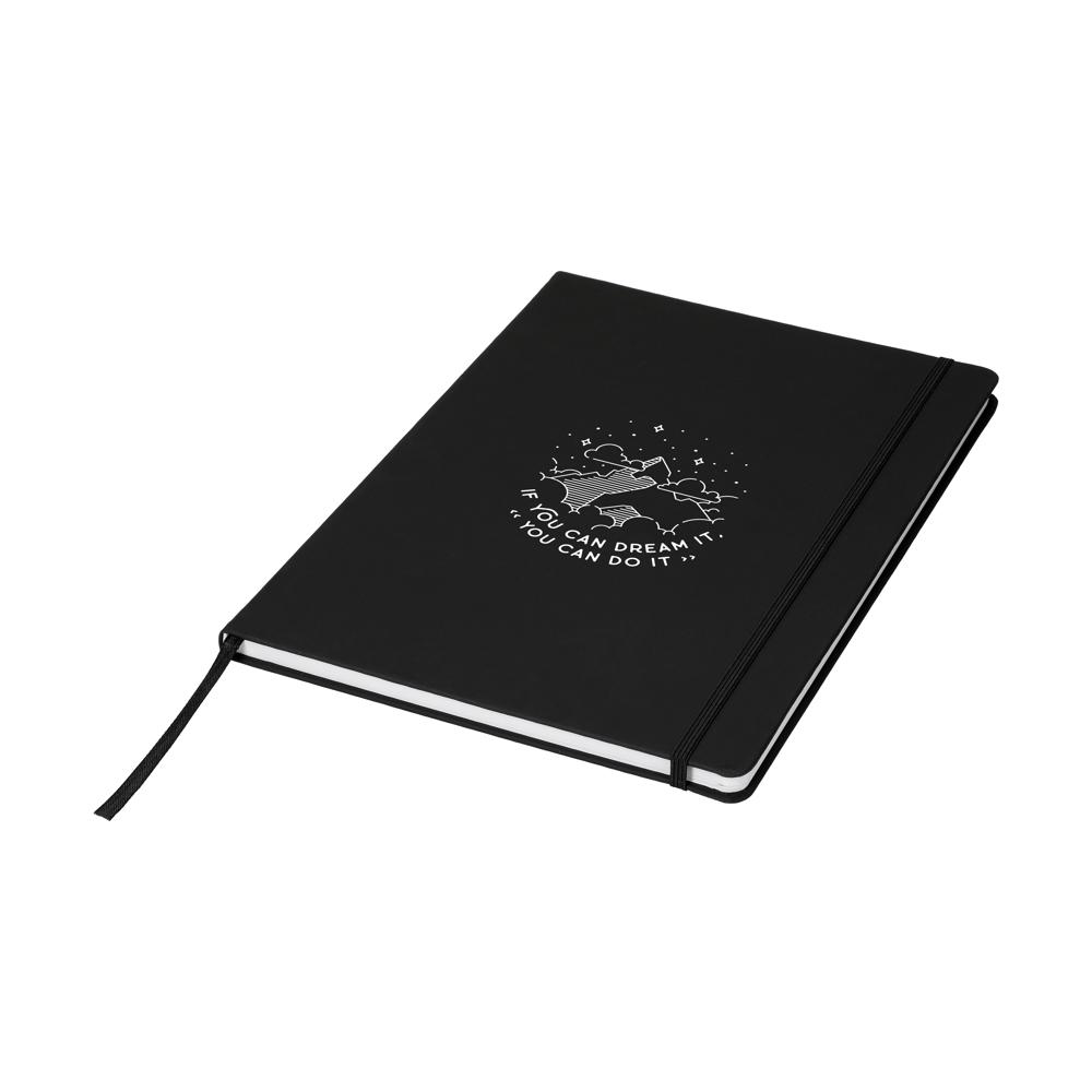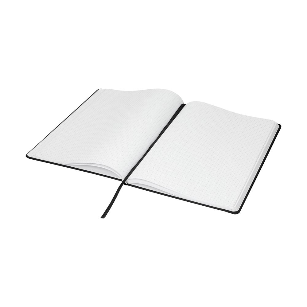 Das Notizbuch "Textura" überzeugt durch seine A4-Größe und das elegante PU-PVC-Material. Es bietet 80 gepunktete Seiten für kreative Ideen, Notizen oder Skizzen. Ein praktisches Lesezeichen hilft beim schnellen Wiederfinden wichtiger Einträge, während das schwarze Gummiband für sicheren Verschluss sorgt – ideal für unterwegs und im Alltag.