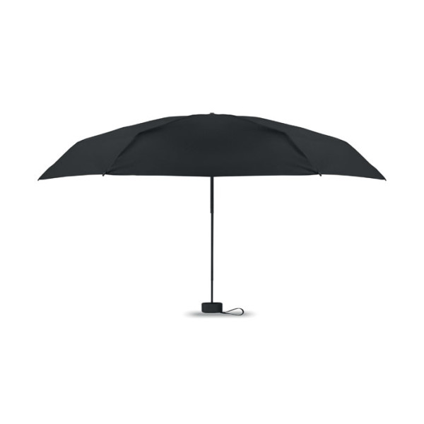 19'' Windproof Regenschirm aus 190T Pongee. 5-fach faltbar. Gestell aus Metall und Fiberglas. Schwarz gummierter Griff und Handschlaufe. Inkl. passende Schirmhülle. Manuelle Öffnung und Schließung.