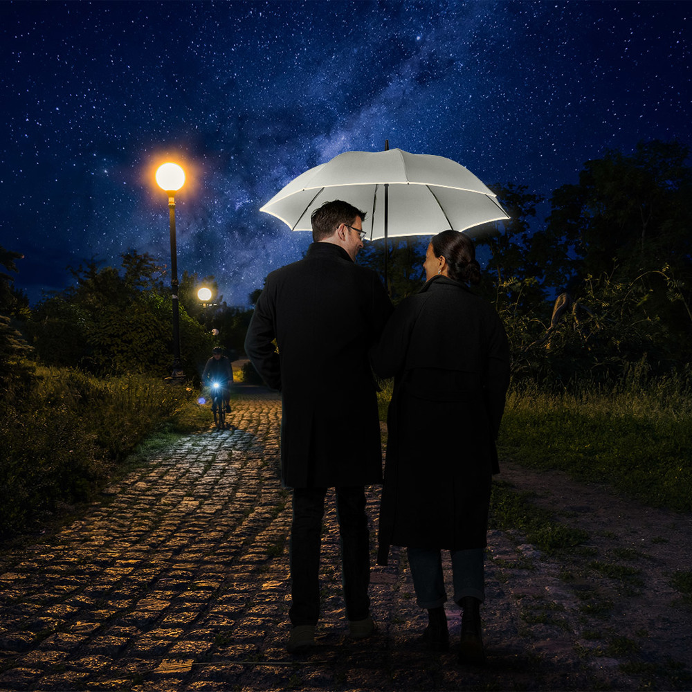Smarter Stockschirm in mittlerer Größe mit modisch reflektierender Paspelierung Komfortable... mehr