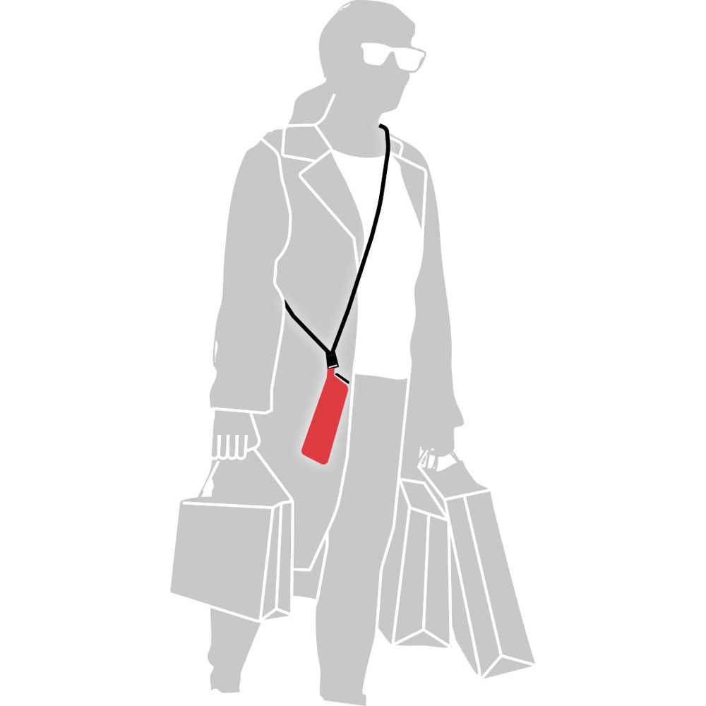 Superleichter Handöffner-Taschenschirm mit abnehmbarem Umhängeband und UV-Schutz Einfache Handhabung durch Sicherheitsschieber, hochwertiges Windproof-PLUS-System für eine maximale Gestell-Flexibilität bei stärkeren Windböen, schwarzer Aluminiumstock, extra leichtes Polyester-Pongee Bezugsmaterial aus recycelten Kunststoffen und mit Lichtschutzfaktor UPF 50+, Kunststoffgriff, Kappe und Lanyard-Klickverschluss aus recyceltem ABS (rABS), Griff mit Werbeanbringungsmöglichkeit, Befestigung des Umhängebandes per Klickverschluss am Futteral oder am Schirm möglich, einfaches Zusammenrollen des Schirms durch breites Schließband