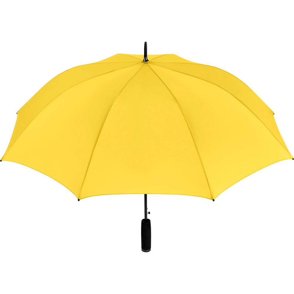 Automatik-Stockschirm mit hervorragendem Preis-Leistungs-Verhältnis und Windproof-System Komfortable Automatik-Funktion zum schnellen Öffnen, hochwertiges Windproof-System für höhere Gestell-Flexibilität und bessere Windsicherheit, flexible Fiberglasschienen, höherer Korrosionsschutz durch schwarze Galvanisierung des Stahlstocks, handsympathischer Soft-Griff mit Werbeanbringungsmöglichkeit