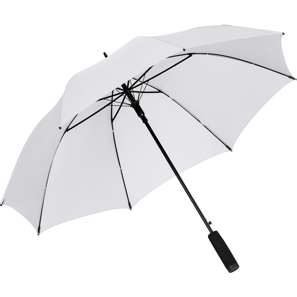 Automatik-Stockschirm mit hervorragendem Preis-Leistungs-Verhältnis und Windproof-System Komfortable Automatik-Funktion zum schnellen Öffnen, hochwertiges Windproof-System für höhere Gestell-Flexibilität und bessere Windsicherheit, flexible Fiberglasschienen, höherer Korrosionsschutz durch schwarze Galvanisierung des Stahlstocks, handsympathischer Soft-Griff mit Werbeanbringungsmöglichkeit
