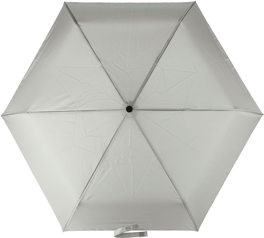 Faltbarer Automatikschirm (27 Zoll) aus rPET 190T mit sechs Paneelen und einem Stahlgestell. Mit einem rPET-Etikett auf dem Klettverschluss und einem Karabinergriff aus Kunststoff. Inklusive Tasche. Winddicht.