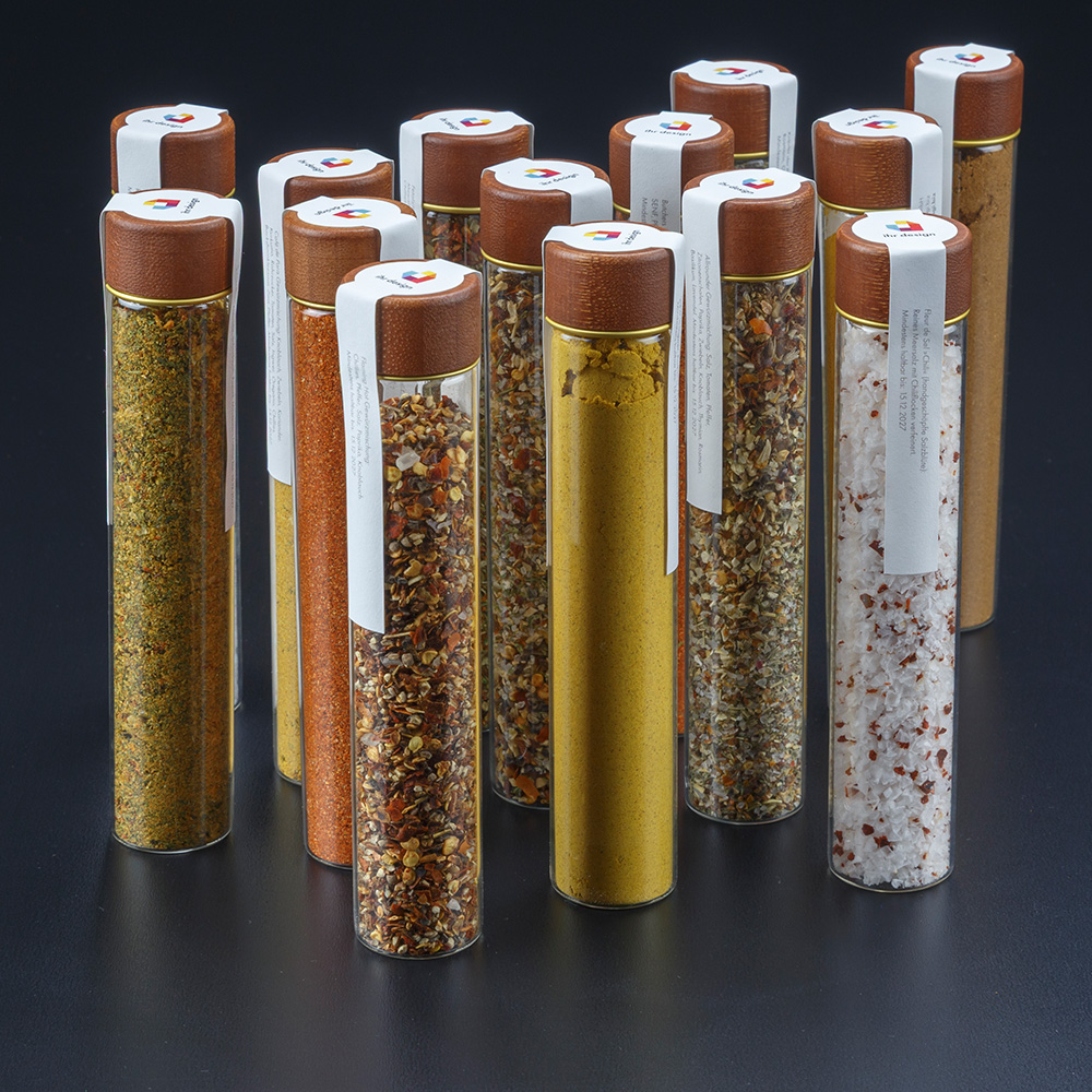 Die auslaufsichere Dichtung sorgt für sicheren Transport und eine angenehme Handhabung – ideal für den Einsatz im Alltag ebenso wie als exklusives Präsent. Gefüllt mit sorgfältig ausgewählten Gewürzklassikern wie Fleur de Sel, Fleur de Sel mit Chili, Allrounder oder Kräutern der Provence, steht der Aromazylinder Premium für puren Geschmack und zeitgemäßen Genuss.