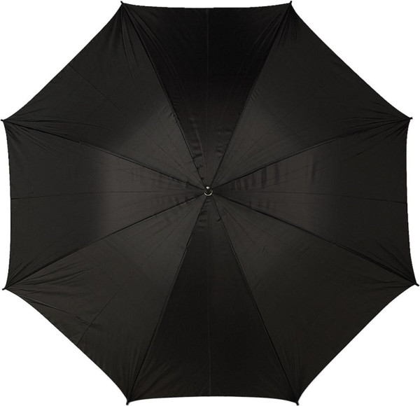 Portierschirm aus Polyester (190T), geradem Holzgriff, Schaft, Doppelspeichen und Spitze aus Metall, Tips aus Kunststoff.