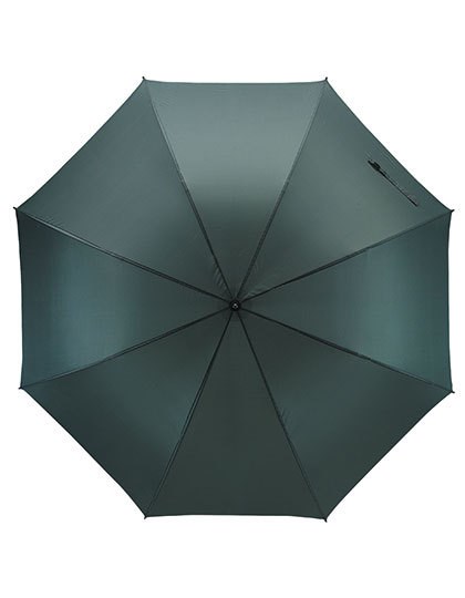 190T Polyester | Schwarz lackierte Doppel-Metallspeichen, Länge 76 cm | Schwarze Kunststoffenden und schwarzer Kunststoffring | Fiberglasschaft mit schwarzer Kunststoffspitze | Schwarzer, gerader Moosgummigriff | Velcro-Verschluss | Feder für Rückholautomatik (sturmsicher)