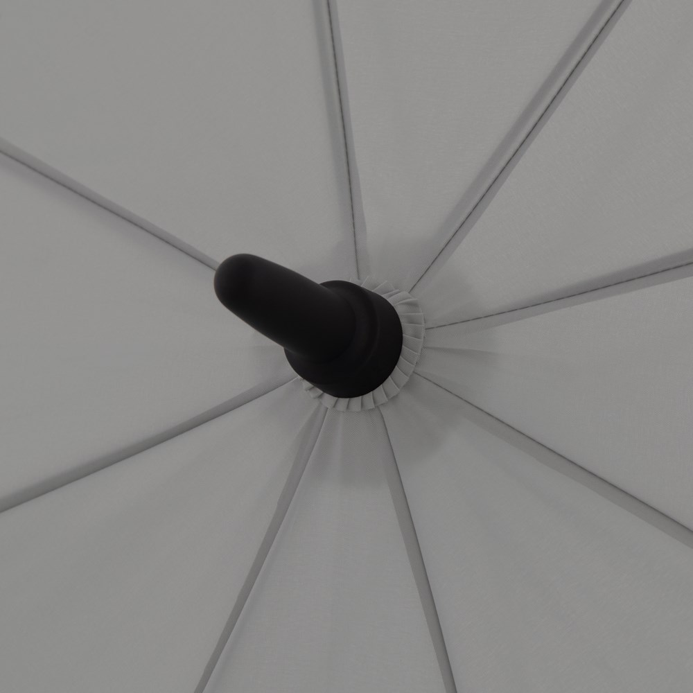 Material: Pongee, Stahlstock, Fiberglasschienen, mattschwarzer Rundhakengriff