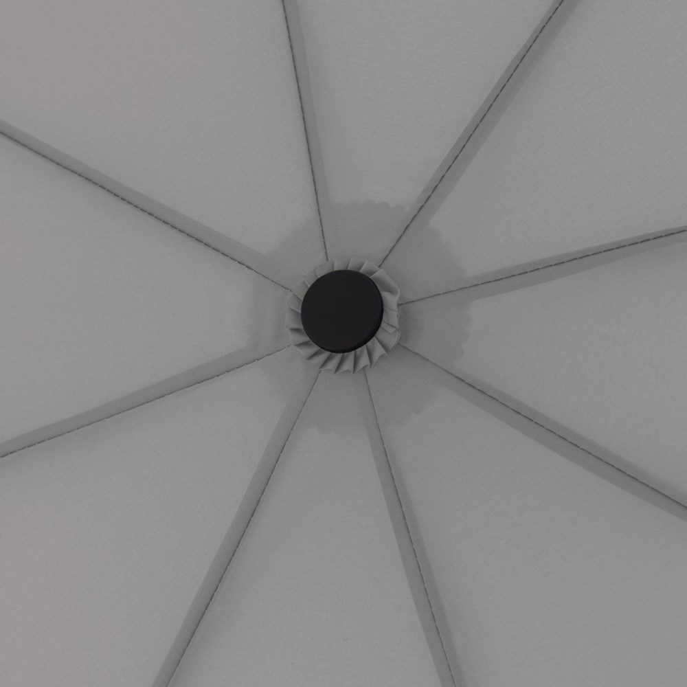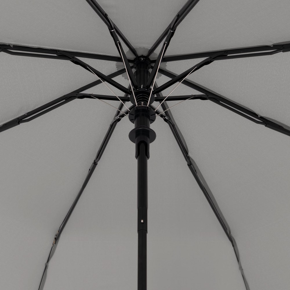 Material: Pongee, Stahlstock, Fiberglas-Teilschienen, mattschwarzer Kunststoffgriff mit integrierter Drucktaste