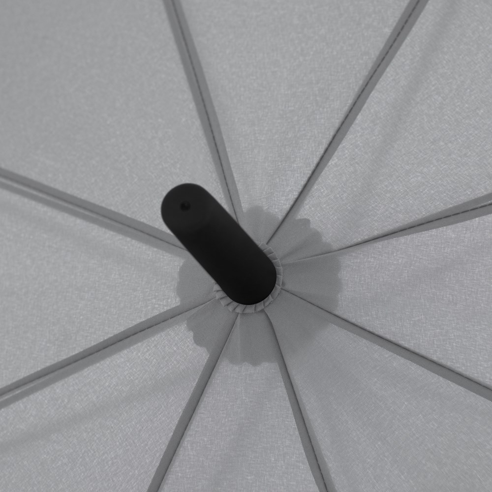 Material: Pongee, Stahlstock, schwarze Fiberglasschienen, mattschwarzer Rundhakengriff
