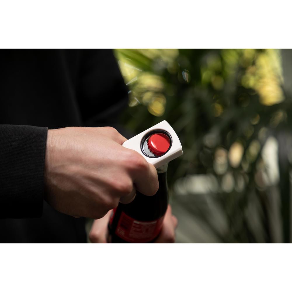 2in1: Kapselheber für das leichte Öffnen und Verschließen von Flaschen. Der Öffner besteht aus stabilem Eisen. Der Wiederverschluss ist mit Wölbungen für einen sicheren Halt versehen. Ring und Rückseite sind farblich aufeinander abgestimmt. Oberseite vollflächig per UV-Digitaldruck veredelbar.