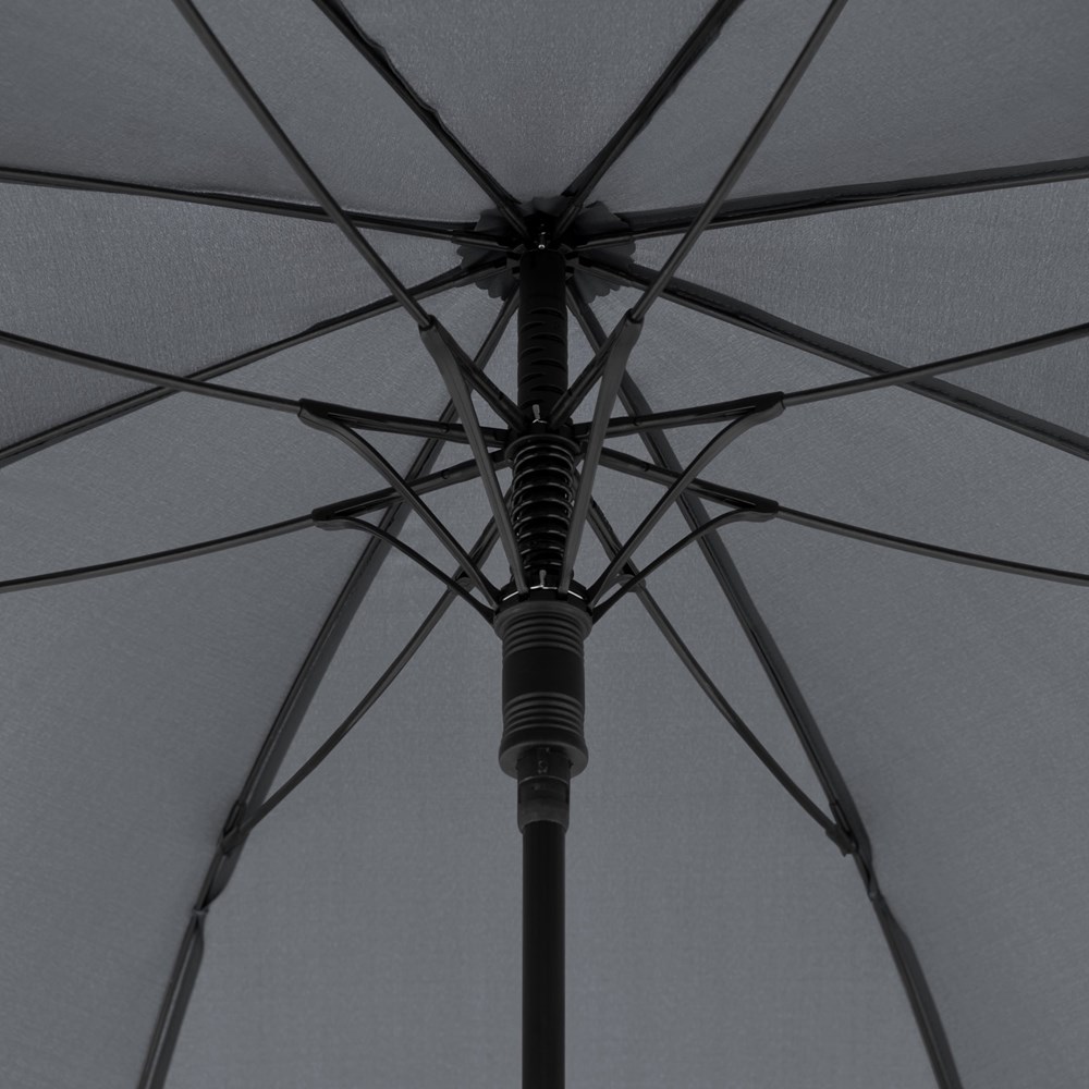 Material: Polyester Pongee, Stahlstock, schwarzes Fiberglasgestell, mattschwarzer Rundhakengriff