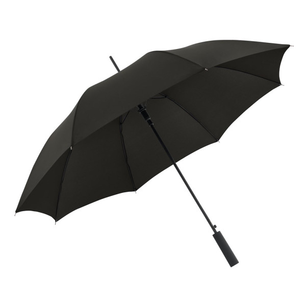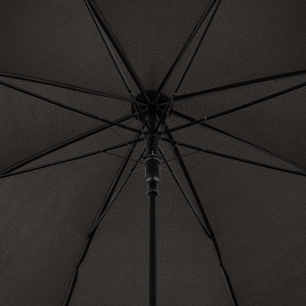Der Langschirm mit Automatikfunktion besticht durch sein schwarzes Gestell und Fieberglasschienen welche ihn zu einem sehr robusten und windstabilen Begleiter machen. Sein modischer Stabgriff liegt gut in der Hand und bietet Kunden die Möglichkeit, ein individuell gestaltetes 3D-Sticker auf der Griffunterseite anzubringen.