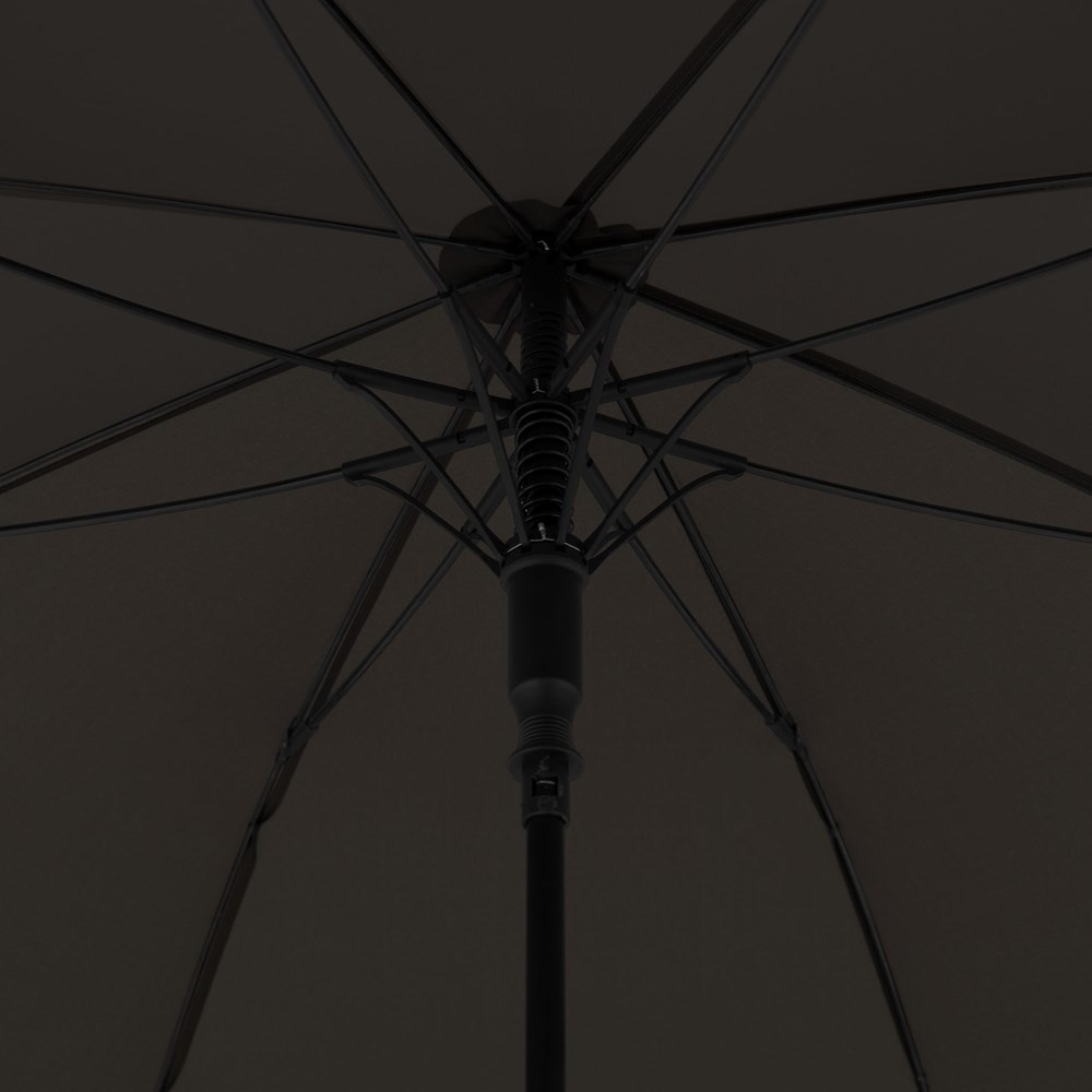 Material: Polyester Pongee, Stahlstock, schwarzes Fiberglasgestell, mattschwarzer Rundhakengriff