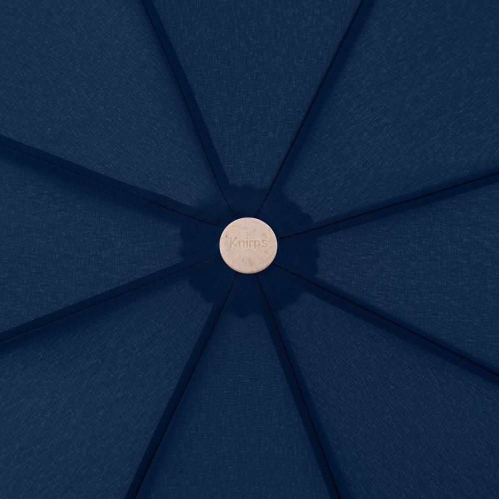 Material: Schirmdach aus recyceltem PET, PFC frei, 3tlg. Stahlstock, 3tlg. Schiene aus Stahl und Fiberglas, Griff aus biologisch abbaubarem Biokunststoff