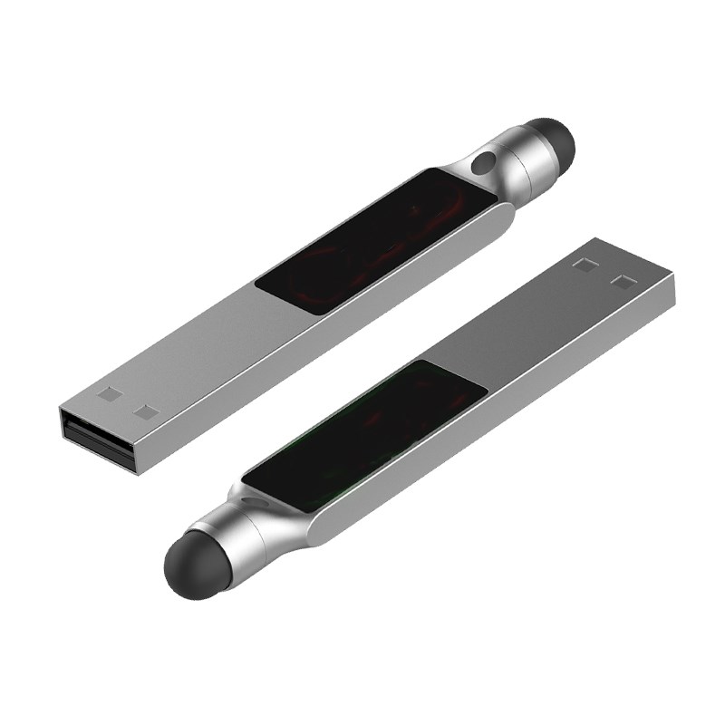 Veredelungsart: Gravur - Einzelnamensgravur - Druck - Digitaldruck CMYK - UV Digitaldruck - LED Leuchtgravur Veredelungsbereich Vorderseite: 25 x 7mm / Rückseite: 50 x 9mm Besondere Produkteigenschaften: USB-Stick mit Touchpen