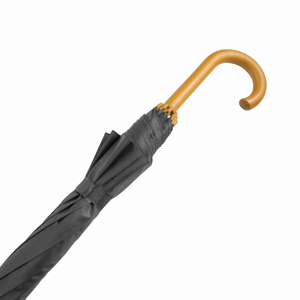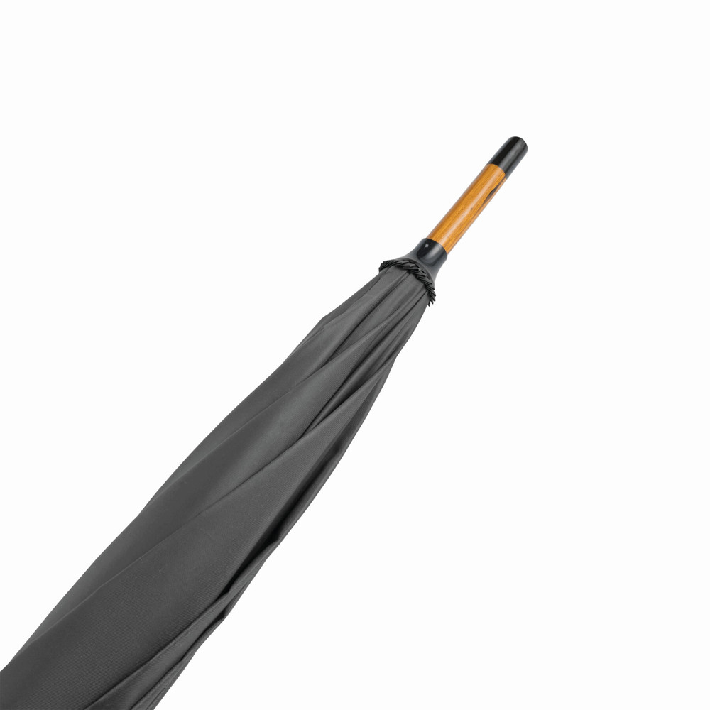 Automatik-Holzstockschirm TANGO: Metallspeichen, Holztips und -Rundhakengriff, Polyester-Bespannung, Schließband mit Klettverschluss