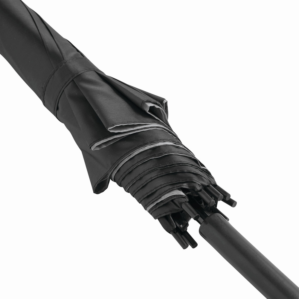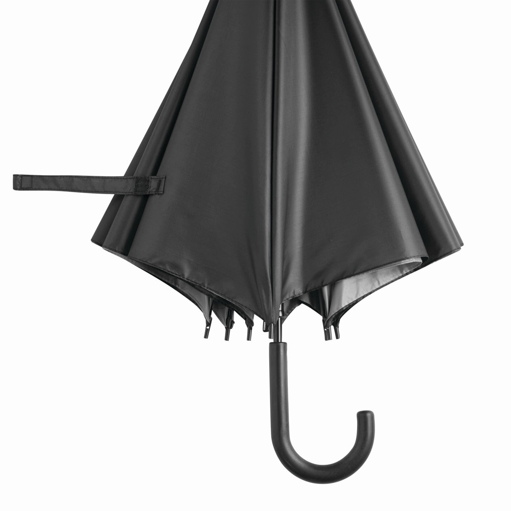 Automatik-Stockschirm DOUBLY: Metallstock und -speichen, Kunststofftips und -Rundhakengriff, doppelt bespanntes und zweifarbiges Schirmdach, Polyester-Bespannung, Schließband mit Klettverschluss