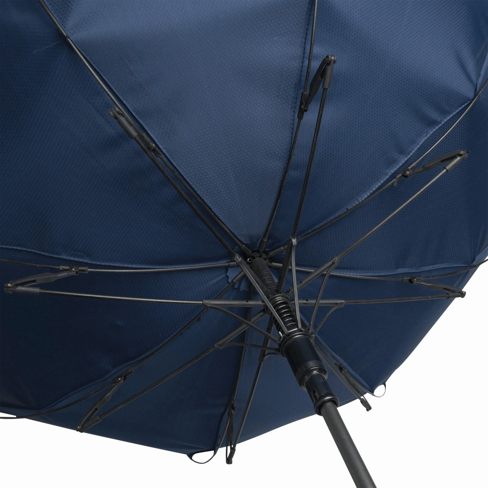 Automatischer Windproof-Stockschirm JUBILEE: Aluminiumstock, Fiberglasspeichen, Metalltips, gummierter und farblich abgestimmter Rundhakengriff, Polyester-Bespannung und -Hülle mit Wabenstruktur, Verschlussband mit Druckknopf und Metall-Platte zur Werbeanbringung
